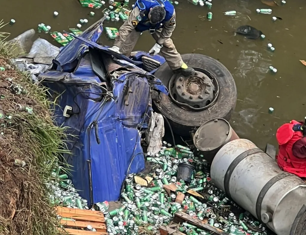 Infelizmente, o motorista do caminhão foi encontrado em óbito no interior da cabine. Antes da chegada da Polícia Rodoviária Federal, populares que passavam pelo local acabaram saqueando parte da carga de bebidas que estava espalhada após o acidente. A situação gerou ainda mais transtornos no atendimento da ocorrência.